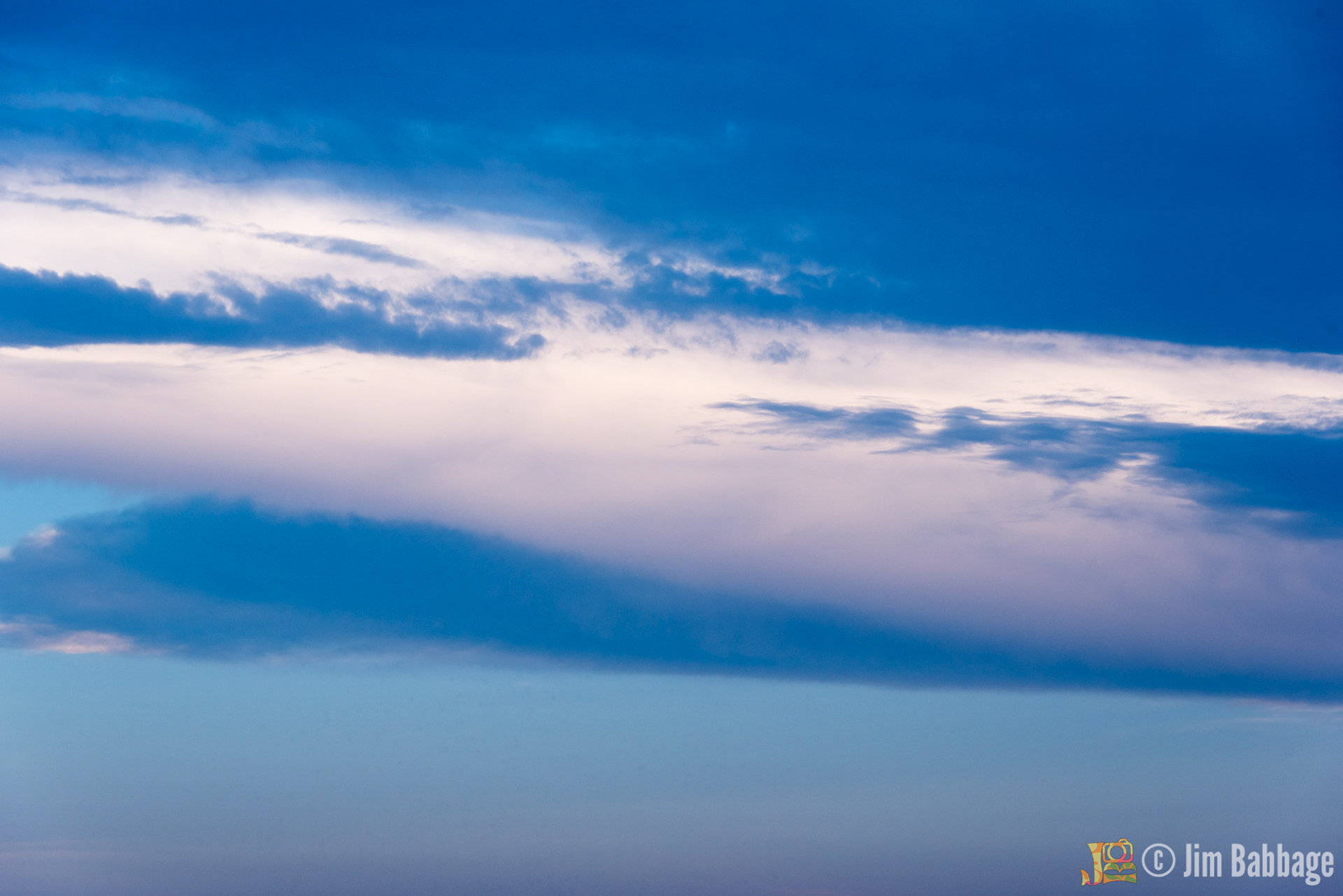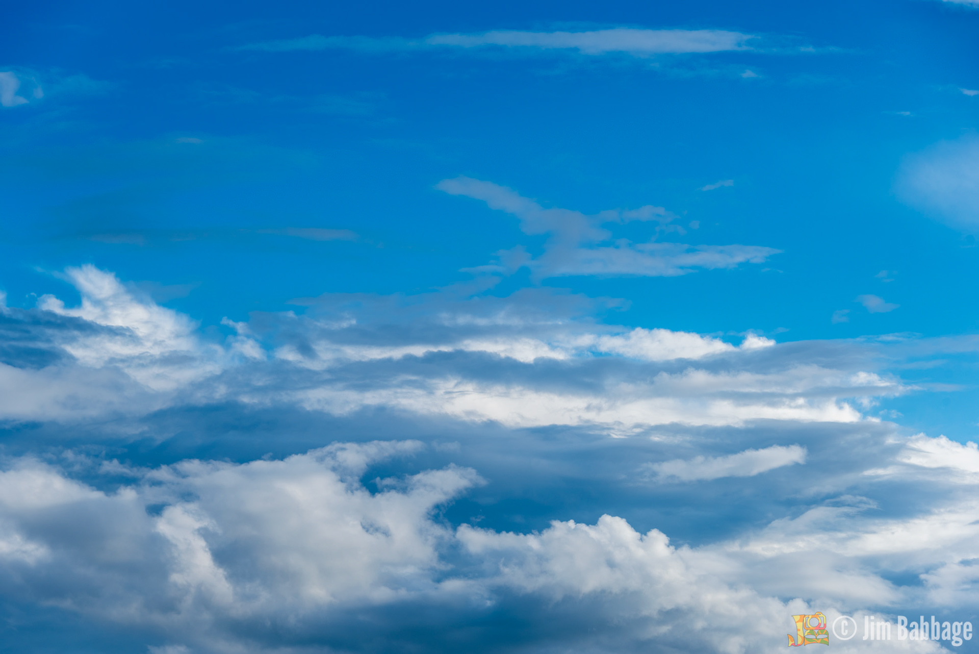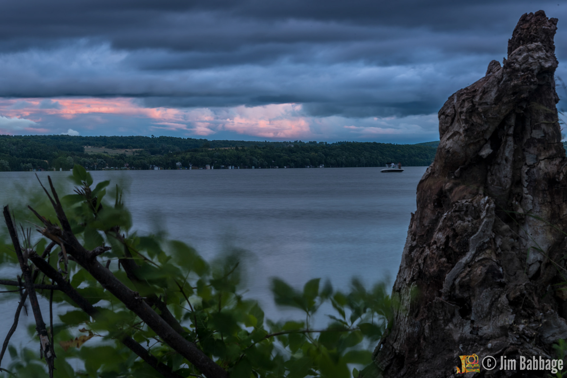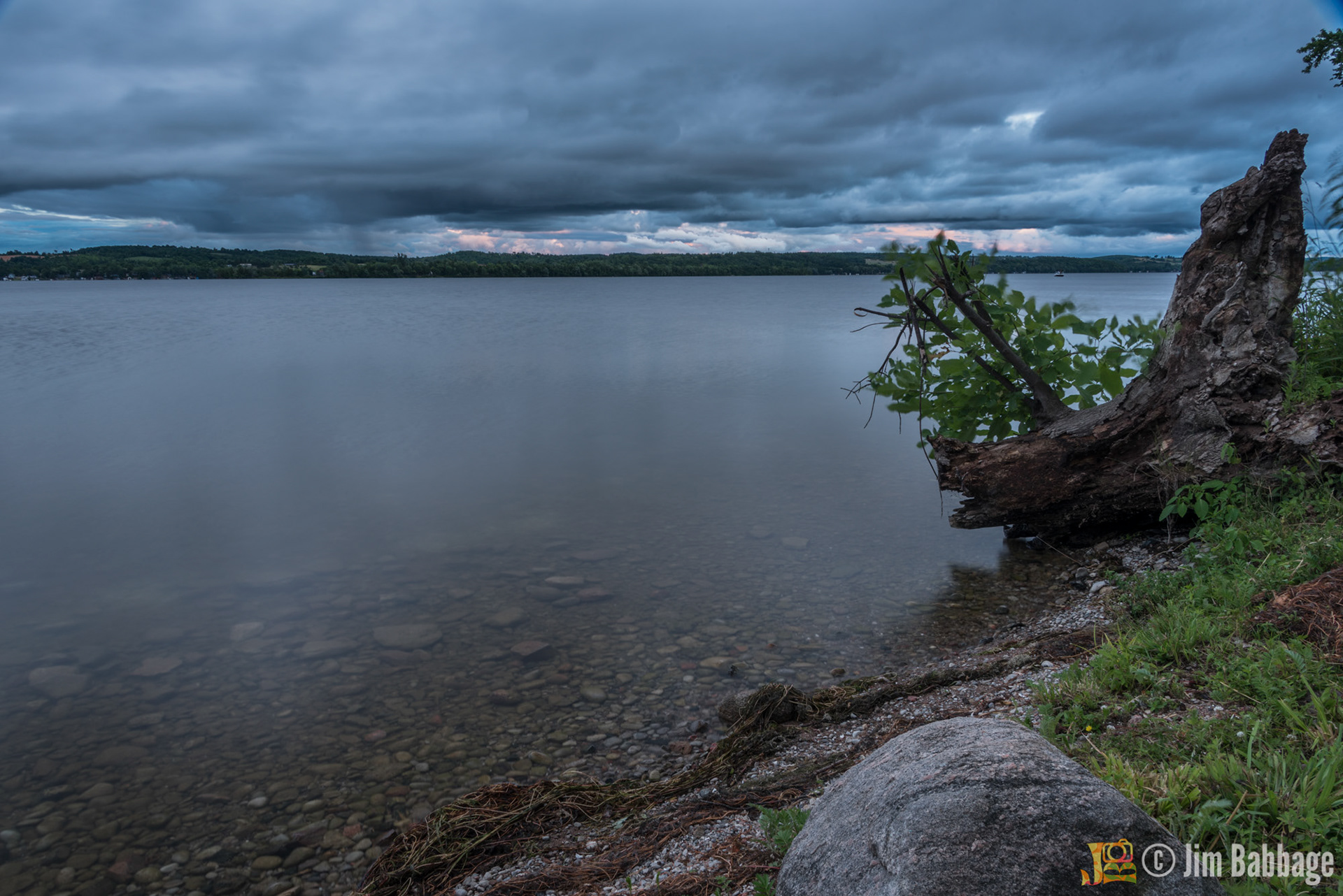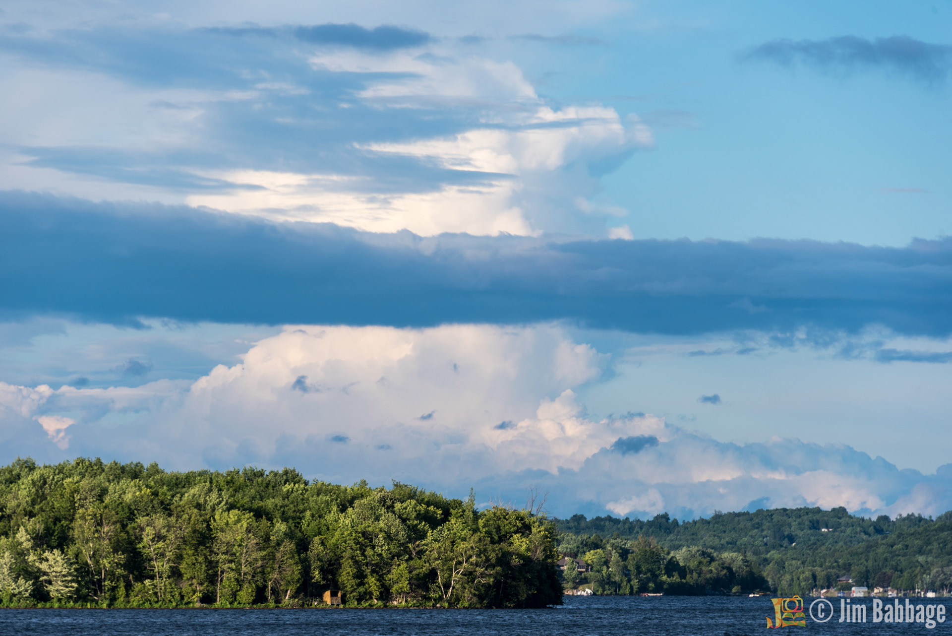 A quick grab shot of Rice Lake. We were on our traditional walk around the resort on Friday evening and I quickly made this image looking out on the lake from the beach and boat slip area. I also posted this image on Facebook, and received many in-person comments from other Bellmere owners. The variety of cloud structures are what caught my eye and what really make this an interesting image.