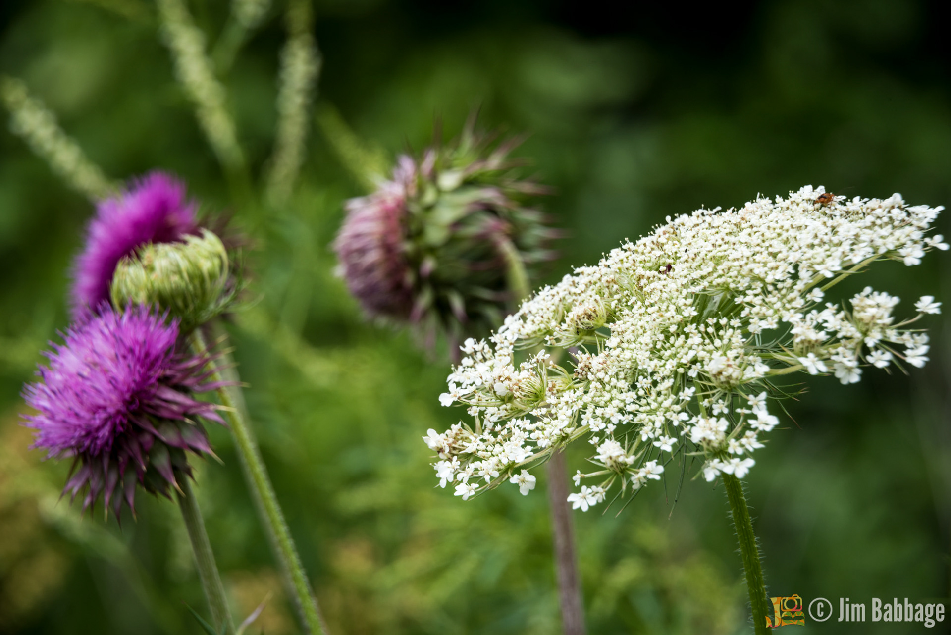 Queen Anne's Lace, giant thistles, asters and daisies were the main plants near the cottage itself. It was great to see honey bees and bumble bees hard at work.