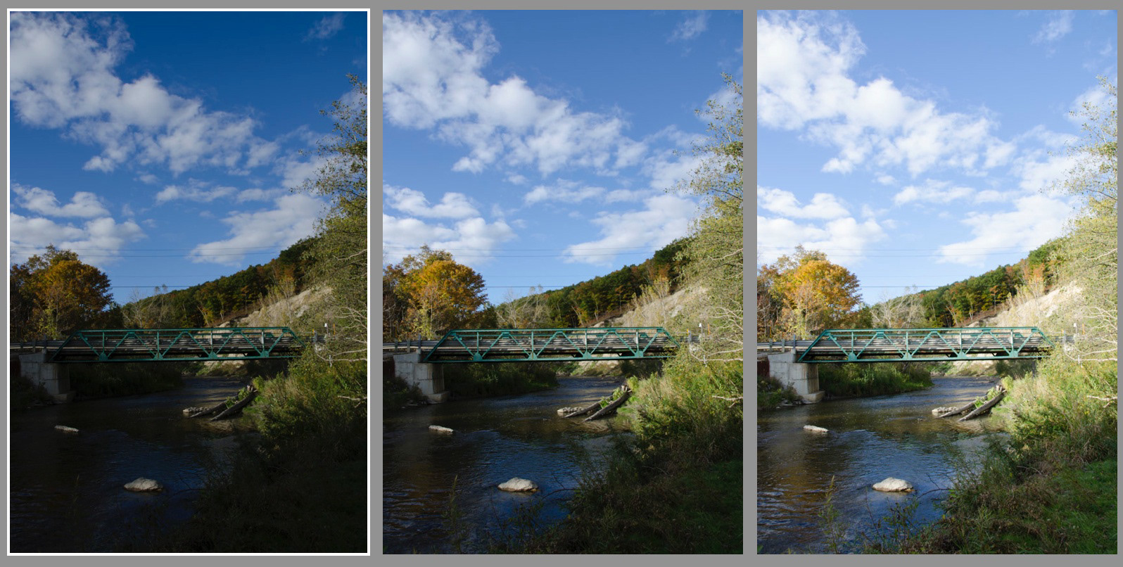 Once the HDR and general image processing were completed (increases to Vibrance and Clarity, reductions to Highlights and Whites, Adjustments to Temperature and Tint to cool the image and add a subtle magenta shift and local Saturation adjustments to pump up the fall color), I experimented with post-crop vignetting and also cropped the image to a square format.