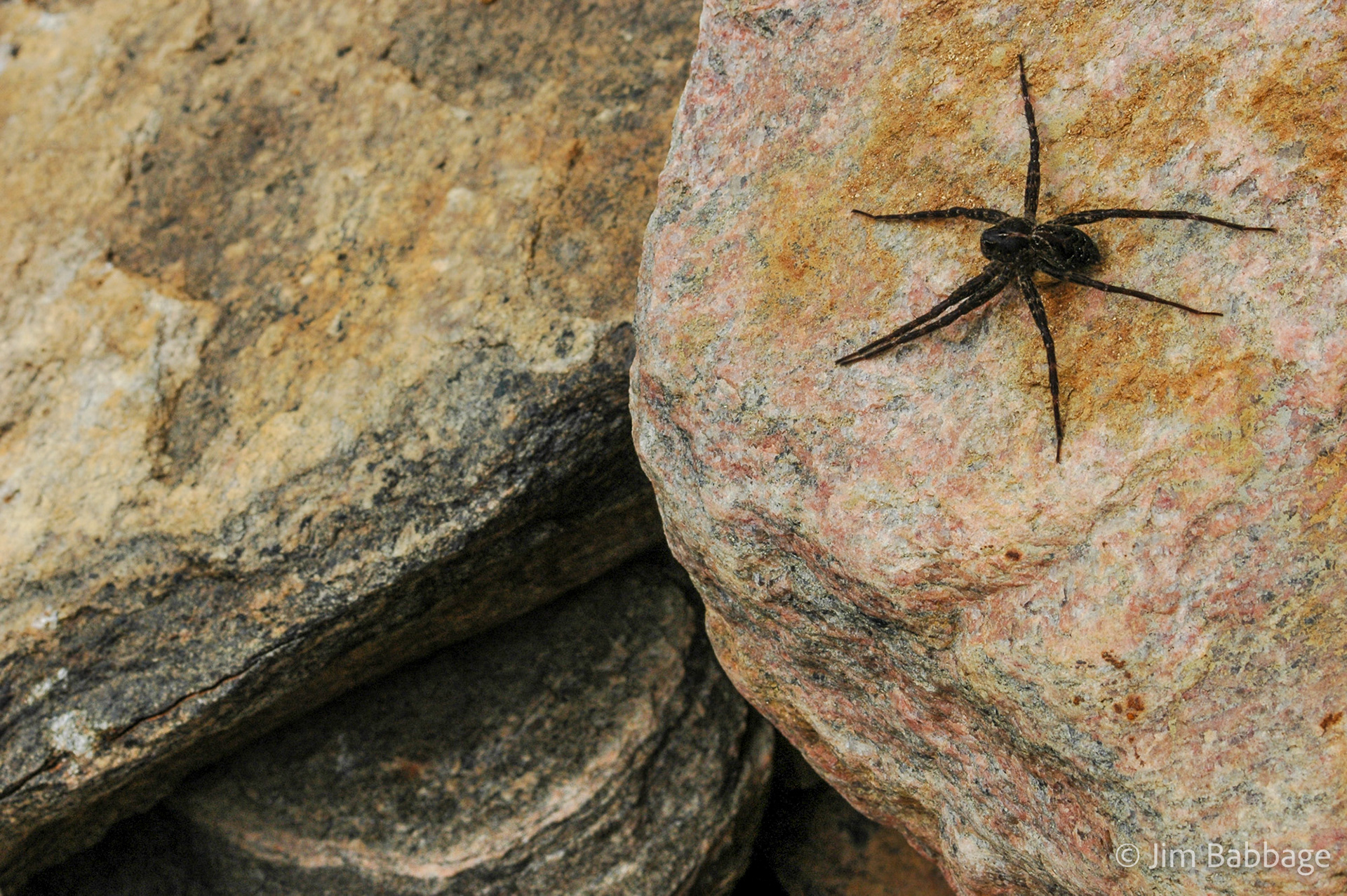 I'm pretty phobic about spiders, and dock spiders - which seem to be monstrously large - can send me running for the hills (or at least the safety of solid ground). I bucked up though, and made this image. The stark contrast of the spider on the rock won over my fear.